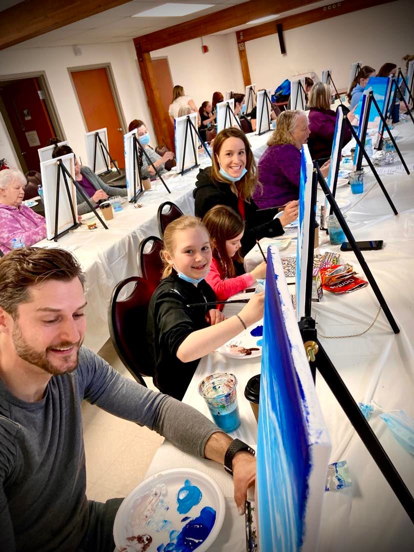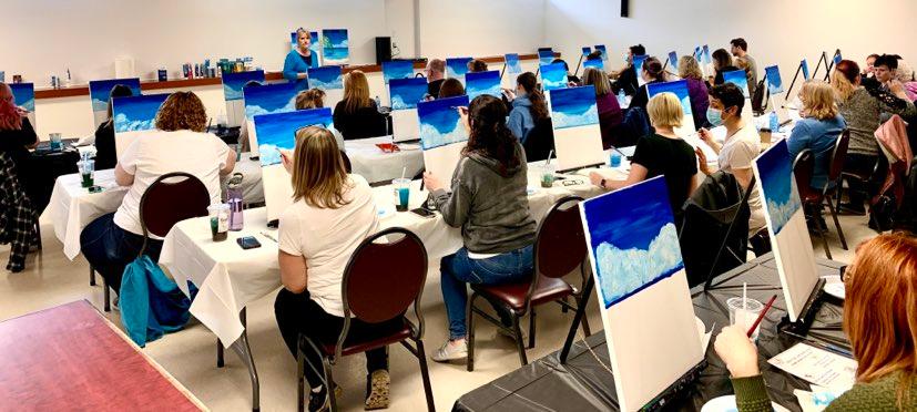 Friends, families, and young artists gathered to paint their personalized Caribbean Beach Scene.